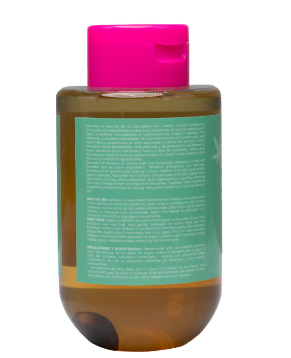 Fortaleza mediante Proteína Hidrolizada de Cannabis: Este componente clave, rico en aminoácidos esenciales, penetra profundamente en la fibra capilar para reparar y fortalecer el cabello. Su regulación de la hidratación previene el encrespamiento, dejando el cabello suave y manejable. También posee efectos antiinflamatorios que aseguran un cuero cabelludo saludable.